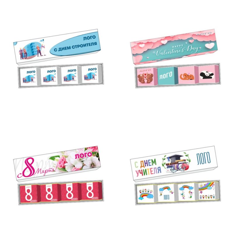 Набор из 16 плиток шоколада в коробке-футляре из картона.