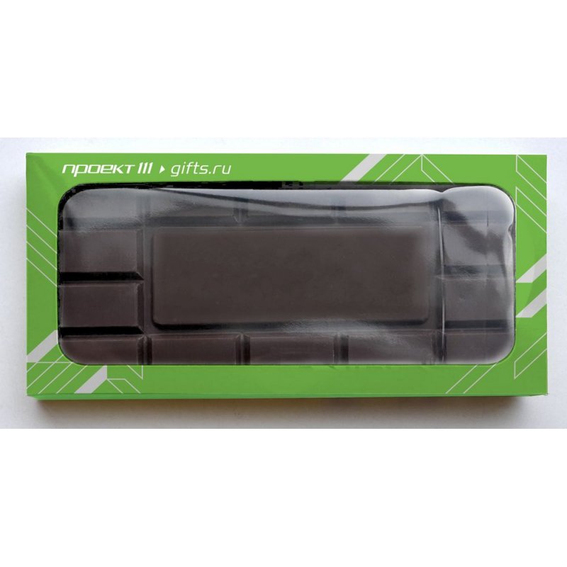 Барельефный шоколад с логотипом в индивидуальной упаковке с окошком.