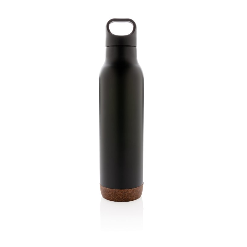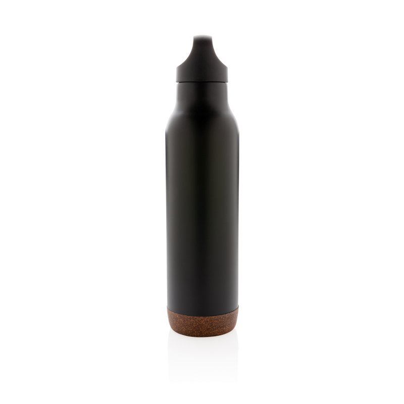 Герметичная вакуумная бутылка.Внутренняя стенка бутылки выполнена из нержавеющей стали марки 304, внешняя – из нержавеющей стали марки 201. Низ бутылки сделан из коры пробкового дуба – одного из самых лёгких, натуральных природных материалов. Пробка - 100% экологичный материал, а главное, что его производство не вредит деревьям. Благодаря своим уникальным свойствам пробка не впитывает влагу, обладает хорошей термоизоляцией и приятна на ощупь. Бутылка сохранит ваши напитки теплыми до 5 часов и прохладными до 15 часов. Объем: 600 мл