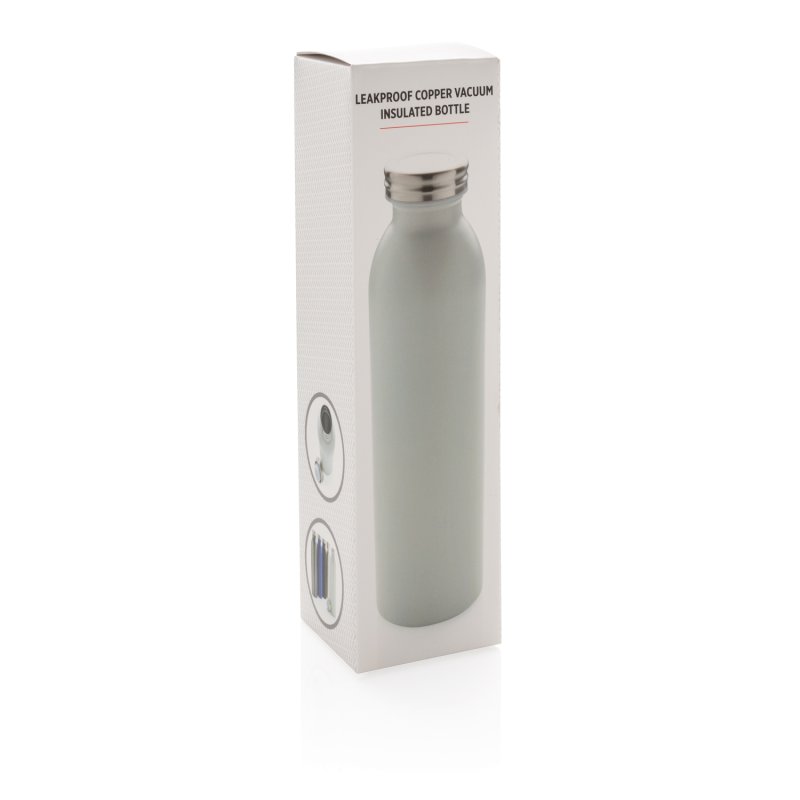 Ищете бутылку для ежедневного использования? Тогда эта бутылка с вакуумной медной изоляцией создана именно для вас. Бутылка сохранит ваши напитки теплыми до 8 часов и прохладными до 24 часов. Крышка надежно защищена от протеканий. Форма бутылки идеально подойдет для нанесения логотипа. Объем: 600мл