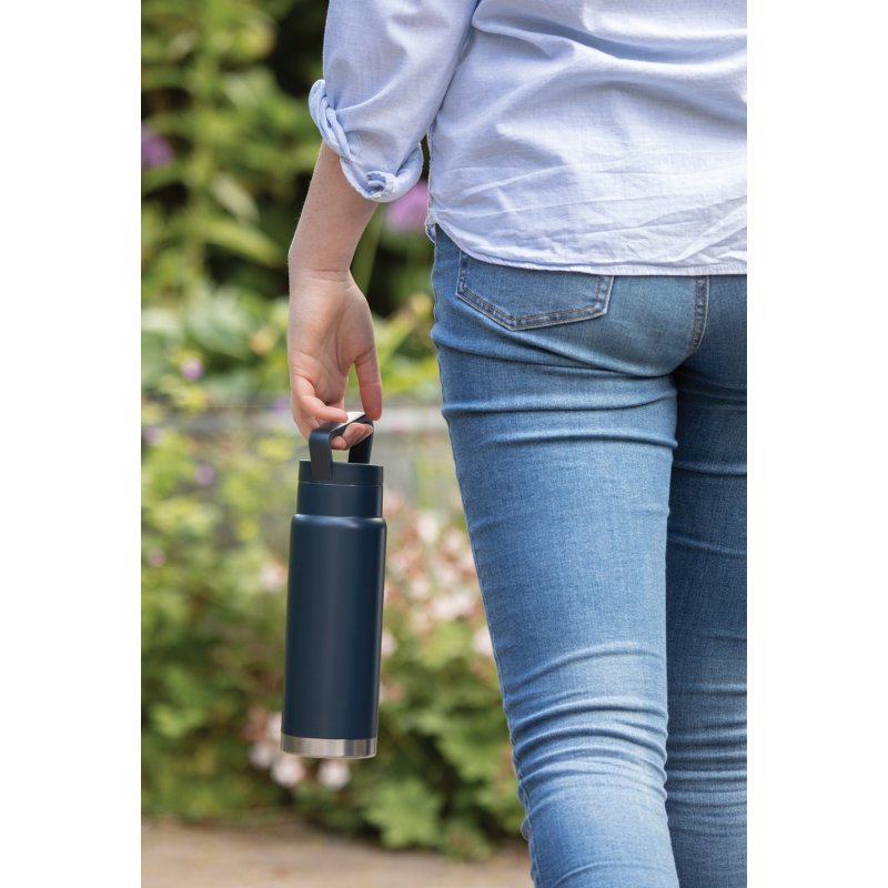 Уникальная бутылка выполнена из высококачественной нержавеющей стали и оснащена двойной изоляцией, чтобы сохранять ваши напитки холодными до 15 часов и горячими до 5 часов. При помощи ручки ее удобно носить с собой. Объем 650 мл. Не содержит BPA.