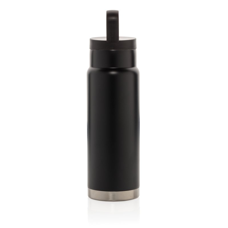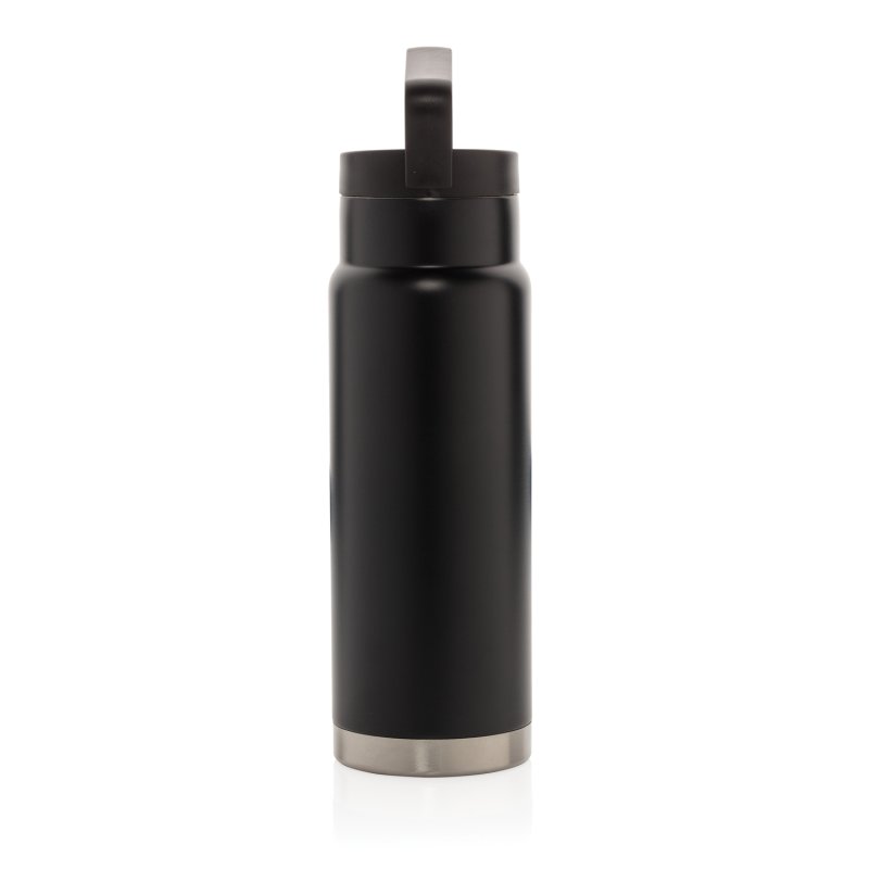 Уникальная бутылка выполнена из высококачественной нержавеющей стали и оснащена двойной изоляцией, чтобы сохранять ваши напитки холодными до 15 часов и горячими до 5 часов. При помощи ручки ее удобно носить с собой. Объем 650 мл. Не содержит BPA.