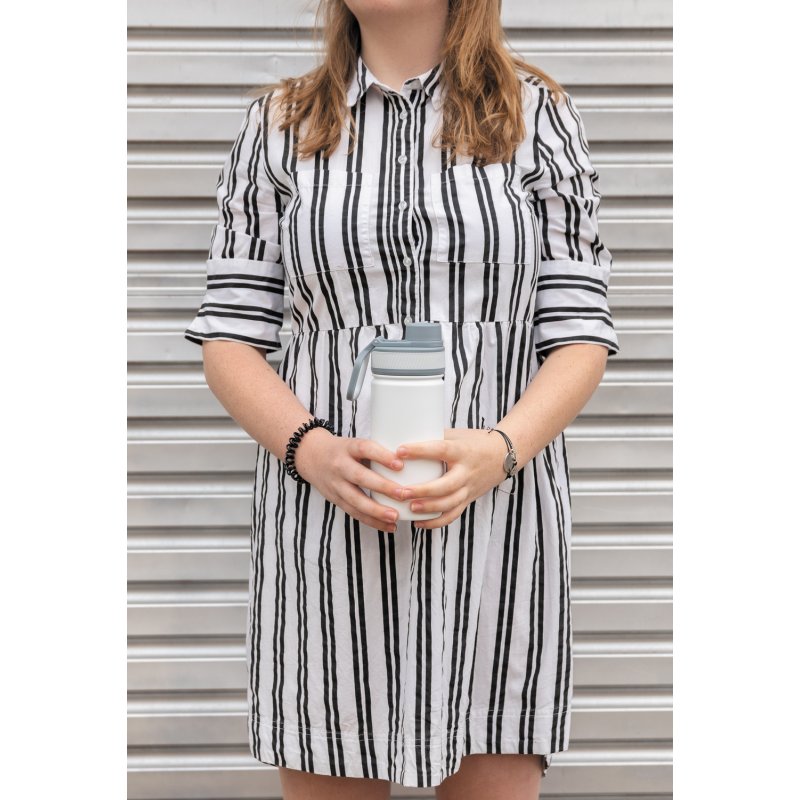 Наслаждайтесь холодными и горячими напитками с этой стильной бутылкой из нержавеющей стали. Уникальный дизайн крышки не позволит жидкости протечь, а к роскошному матовому покрытию приятно прикасаться. Бутылка сохранит ваши напитки горячими до 5 часов и холодными до 15 часов. Объем 550 мл. Не содержит BPA.