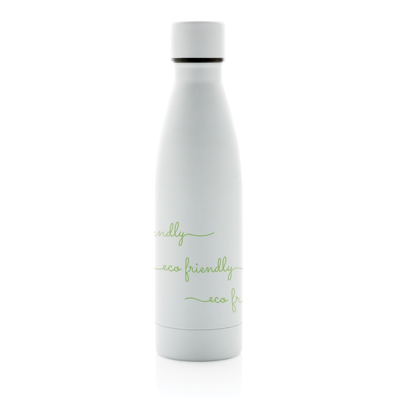 Минималистичная вакуумная бутылка для воды сделана из переработанной нержавеющей стали, соответствует международному стандарту RCS. Двойные стенки позволяют сохранить температуру ваших напитков горячими до 5 и холодными до 15 часов. Универсальный размер, подходит для большинства автомобильных подстаканников. Сертификация RCS гарантирует полный контроль всей цепочки поставок от переработки материала до готового изделия. Содержание вторичного сырья: не менее 85%. Не содержит BPA. Объем: 500 мл. Поставляется в крафтовой коробке, сертифицированной FSC®.