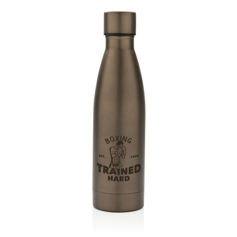 Минималистичная вакуумная бутылка для воды сделана из переработанной нержавеющей стали, соответствует международному стандарту RCS. Двойные стенки позволяют сохранить температуру ваших напитков горячими до 5 и холодными до 15 часов. Универсальный размер, подходит для большинства автомобильных подстаканников. Сертификация RCS гарантирует полный контроль всей цепочки поставок от переработки материала до готового изделия. Содержание вторичного сырья: не менее 85%. Не содержит BPA. Объем: 500 мл. Поставляется в крафтовой коробке, сертифицированной FSC®.