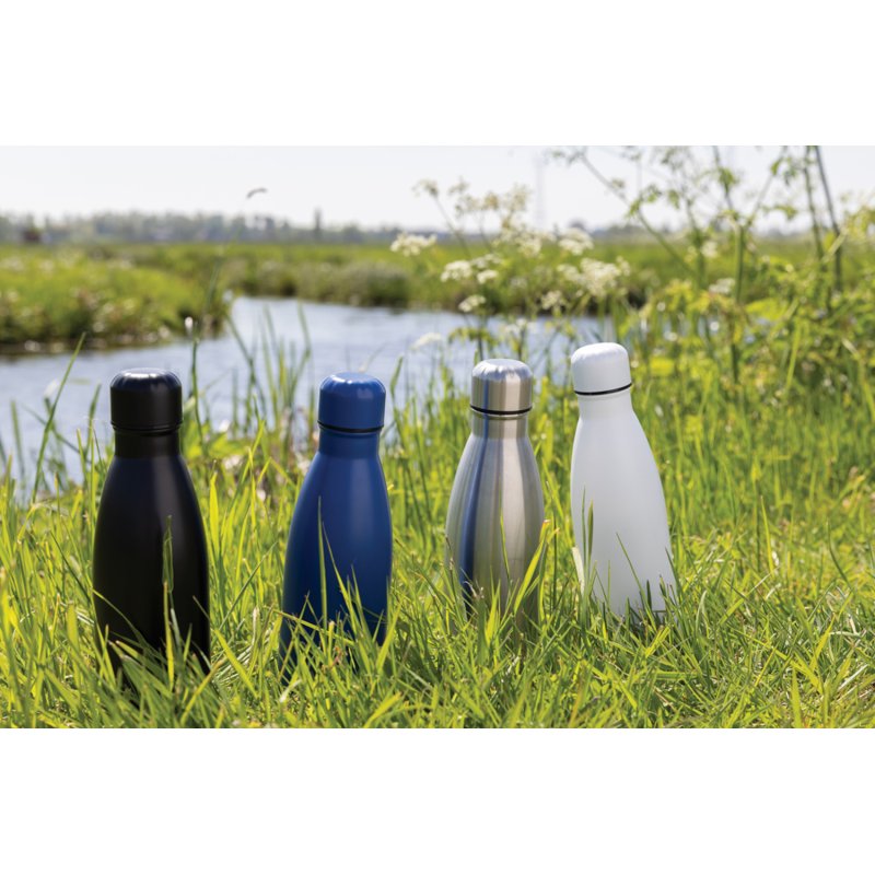 Откажитесь от пластиковых бутылок и одноразовых стаканчиков в пользу долговечной бутылки Eureka. Это стильный и экологичный аксессуар, изготовленный из переработанной нержавеющей стали. Благодаря тонким стенкам бутылка получилась легкой, но прочной, а герметичная крышка не даст напитку пролиться в сумке. Объем бутылки 500 миллилитров. Стоит помнить, что она подходит только для холодных напитков. Подходит для большинства автомобильных подстаканников. Содержание вторичных материалов: 84% от общего веса изделия. Все переработанные материалы имеют сертификат RCS, который гарантирует полный контроль цепочки поставок переработанных материалов.
