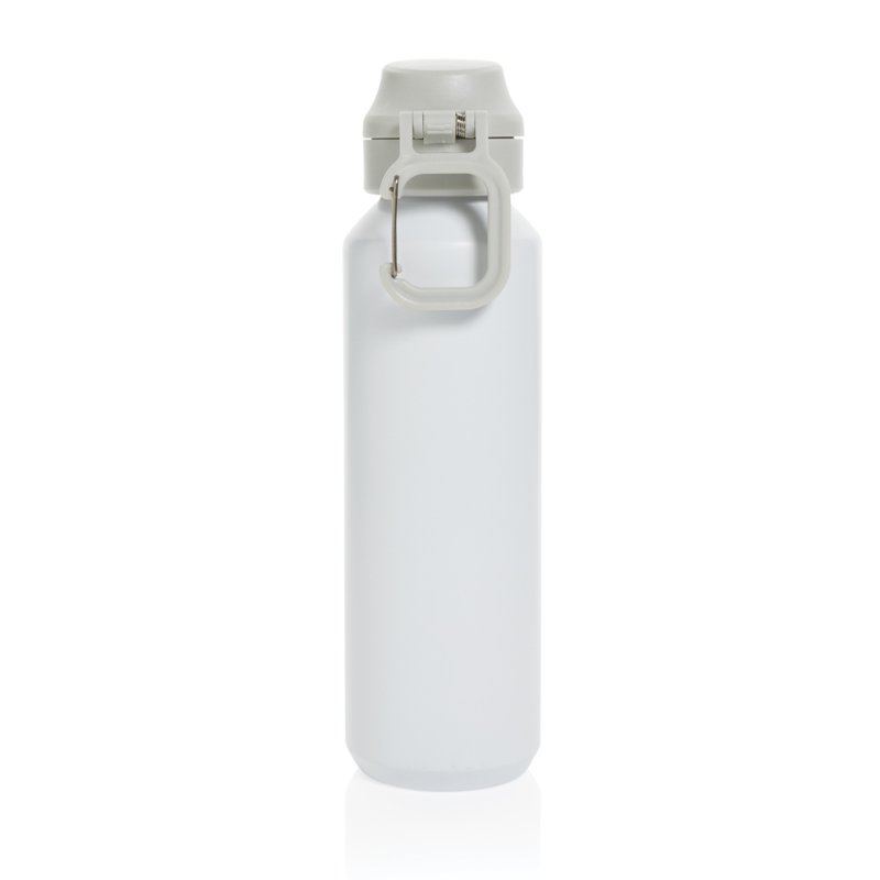 Спортивная бутылка Via — идеальный компаньон во время активного отдыха. Изготовлена из переработанной стали марки 304. Оснащена герметичной запираемой крышкой, которую при необходимости легко открутить. Бутылка предназначена для холодных напитков, рекомендовано только ручное мытье. На 73% состоит из переработанной стали, сертифицированной RCS (Recycled Claim Standard). Сертификация RCS гарантирует полный контроль всей цепочки поставок переработанных материалов. Не содержит бисфенол А, вредный для организма. Объем 600 мл.