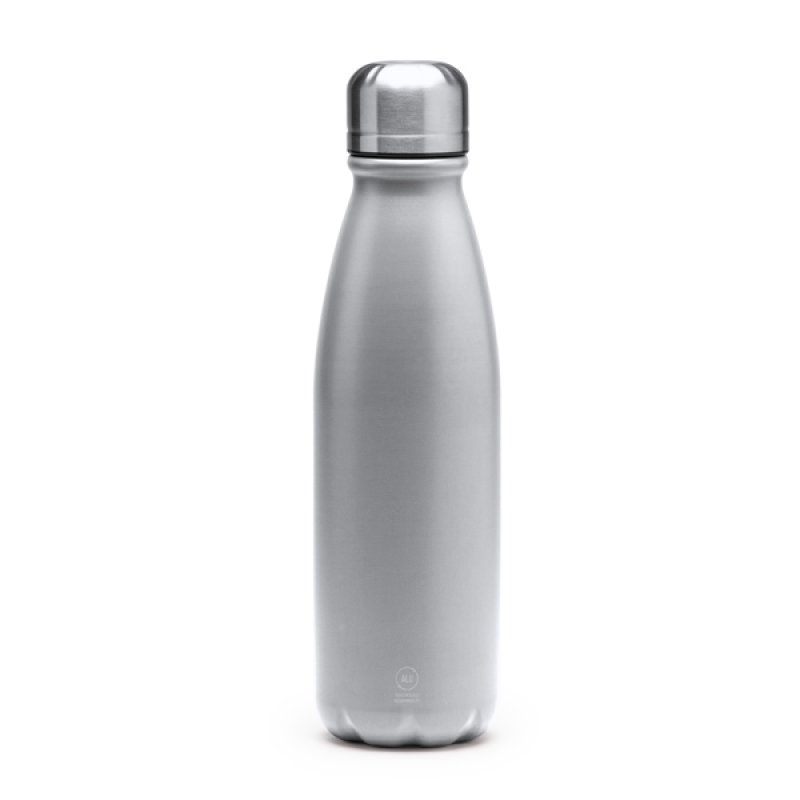 Бутылка из переработанного алюминия с простыми стенками идеально подходит для ежедневного использования. Емкость 550 мл.