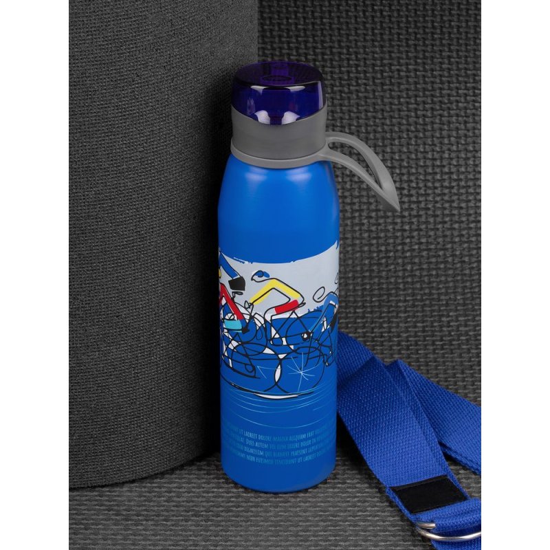 Легкая бутылка для спорта с откидной крышкой и силиконовой петлей для транспортировки.