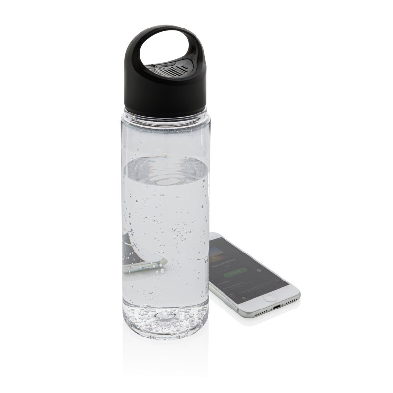 Тритановая бутылка с беспроводной колонкой мощностью 3W. Время работы колонки — 3 часа. Объем 680 мл.