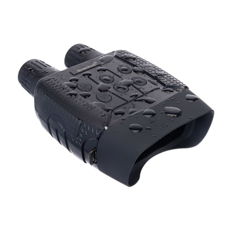 Корпус бинокля имеет эргономичную форму, поэтому удобно ложится в руку. Прибор также не боится брызг воды. Для управления используются всего шесть кнопок, поэтому работать с биноклем очень легко — все нужное находится под рукой. Одного комплекта батареек хватает на 4–10 часов непрерывной работы (длительность работы зависит от интенсивности использования ИК-подсветки).