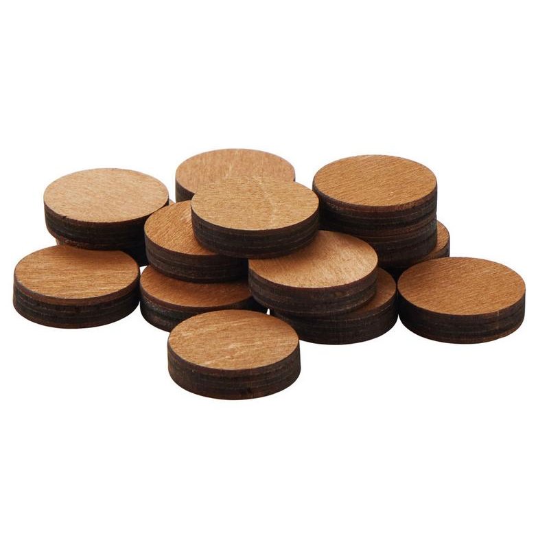 В комплект входят фишки из фанеры двух оттенков, гармонирующих с базовым цветом доски.