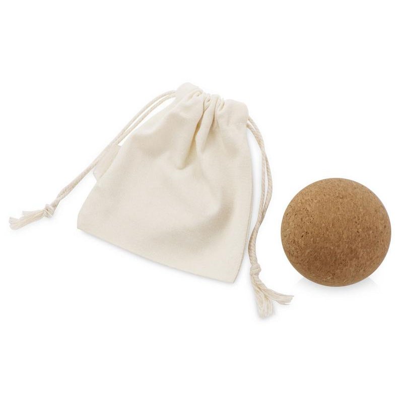 Массажный мяч из пробки спортивного бренда VIbe в хлопковом мешочке. Мяч помогает расслабить мышцы после тренировки и разогреть их до занятий спортом, и подходит для голеней, стоп, мышц бедра, поясницы, груди, верхней части спины, шеи, косых мышц живота, рук.