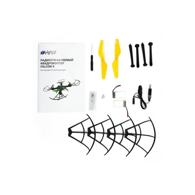 - Комплектность:квадрокоптер, ПУ, аккумулятор- 2шт, USB кабель, запасные лопасти, запасные винты, стойка шасси- 4шт, защита пропеллеров, отвертка, инструкция