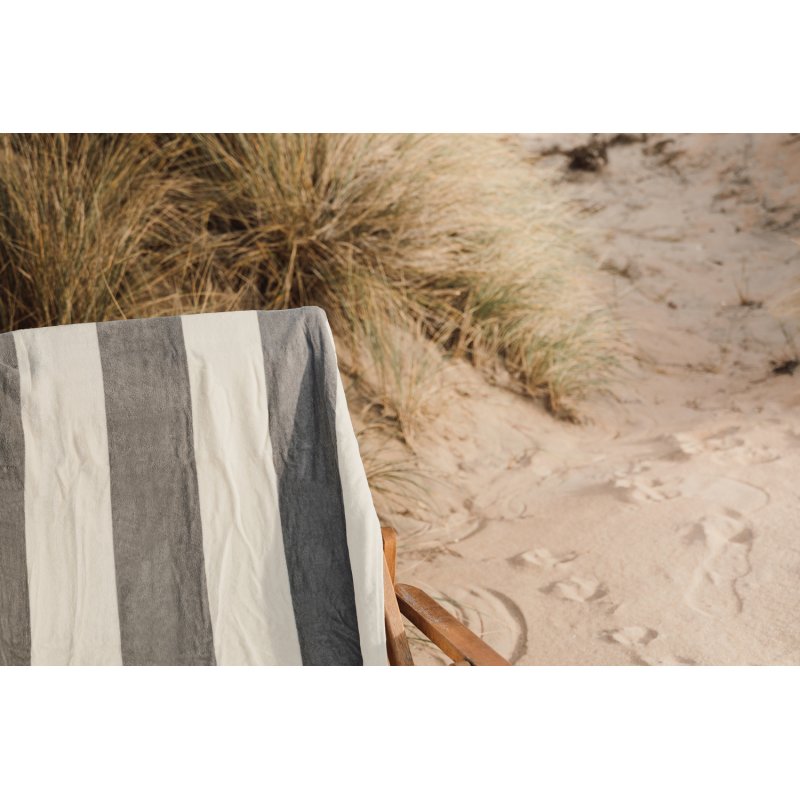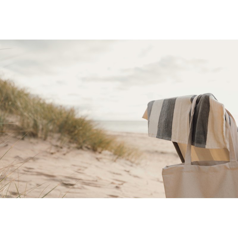 Хлопковое пляжное полотенце с кисточками и карманом для шезлонга. Наслаждайтесь вашим отдыхом, а полотенце будет надежно закреплено. Произведено в Индии из 100% органического хлопка. Плотность ткани 450 г/м². Сертифицировано GOTS (Глобальный стандарт органического текстиля).