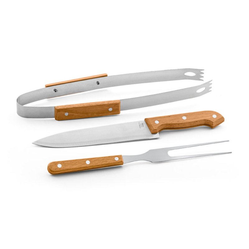 Набор из 3 предметов для барбекю из дерева и нержавеющей стали. Набор из 3 предметов в жестком футляре 210D.