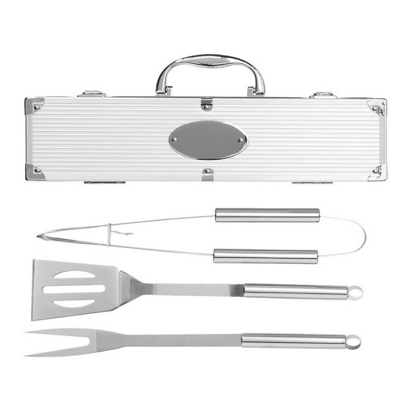 Набор для барбекю 3 предмета. Лопатка, щипцы и вилка в кейсе. На алюминиевом кейсе имеется шильд для персонализации.
