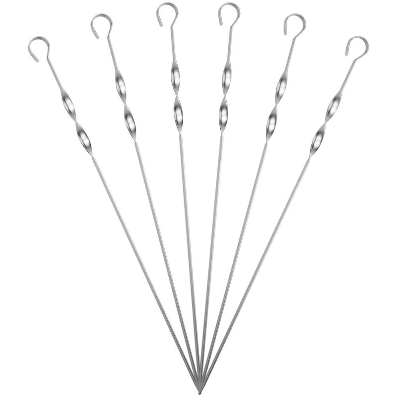 Укороченные шампуры подходят для мангалов шириной до 30 см. Спираль у рукоятки позволяет фиксировать шампур при переворачивании шашлыка во время приготовления.