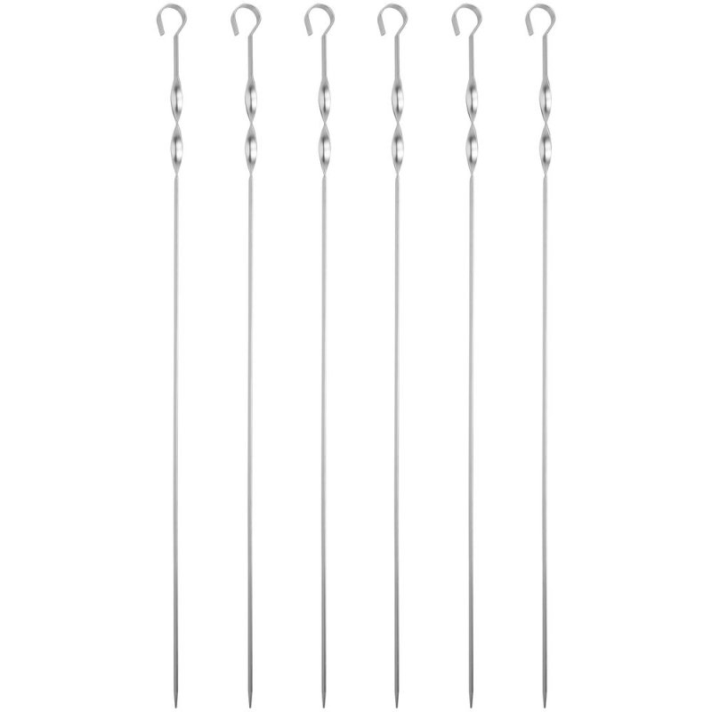 Длинные шампуры подходят для мангалов шириной до 40 см. Спираль у рукоятки позволяет фиксировать шампур при переворачивании шашлыка во время приготовления.