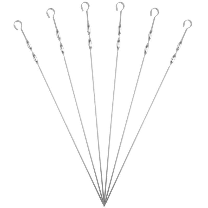 Длинные шампуры подходят для мангалов шириной до 40 см. Спираль у рукоятки позволяет фиксировать шампур при переворачивании шашлыка во время приготовления.