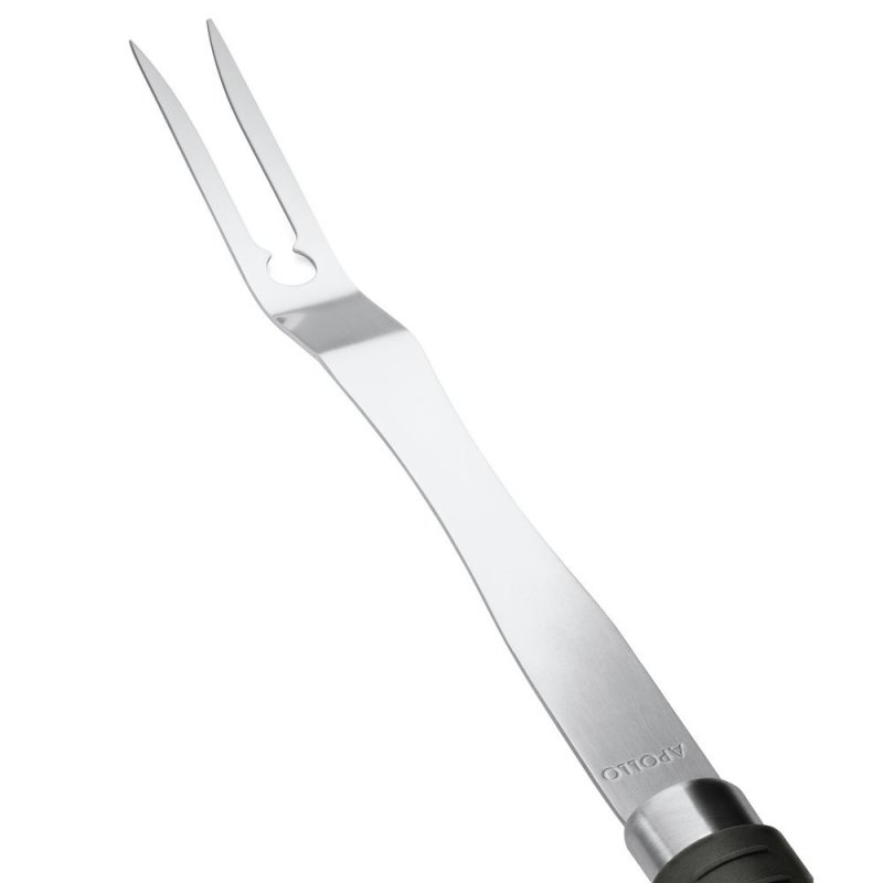 Вилка Ribeye предназначена для переворачивания продуктов на гриле, мангале или жаровне. С ее помощью удобно проверять степень готовности блюд. Рабочая часть вилки изготовлена из нержавеющей стали и выдерживает высокие температуры. Изделие имеет оптимальную длину для безопасного использования, рукоятку с противоскользящим покрытием и петлю для подвешивания.