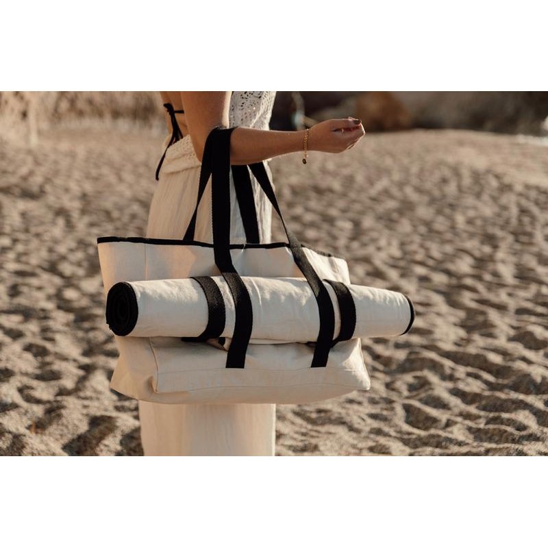 Может ли пляжный образ быть элегантным? Да — если дополнить его экологичной сумкой из серии Volonne! Ее размеры позволяют взять с собой все, что необходимо на отдыхе: от купальника до пледа и перекуса. Снаружи предусмотрены держатели для полотенец — или, например, пледа для пикника из этой же серии. Внутри есть кармашек для мелочей. Сумка изготовлена из переработанных пластиковых бутылок и хлопка. Ее можно взять с собой на пикник, прогулку или отправиться с ней за покупками: минималистичный дизайн с контрастными цветами делает сумку подходящей как для отдыха, так и для будней. Плотность ткани 500 г/м². Содержание вторичных материалов: 100%. Сертифицировано AWARE™. Наличие индикаторных частиц AWARE™ подтверждает, что мы действительно используем переработанные материалы. 2% с продажи каждой вещи, отмеченной сертификатом AWARE™, мы перечисляем в поддержку всемирной организации Water.org.