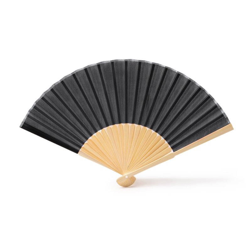Веер с пластинами из бамбука и полотном из полиэстера.