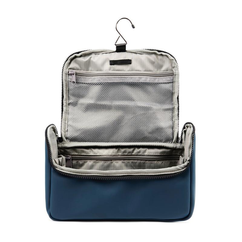 Держать все необходимое под рукой, в полном порядке, да еще и стильно? Легко — с дорожной косметичкой из серии Baltimore. Отправляетесь ли вы в командировку, в короткую поездку или длительное путешествие, с ней вы сможете взять с собой косметику, шампунь, гель для душа и любые другие нужные гигиенические средства. Косметичка изготовлена из непромокаемого полиуретана с приятным на ощупь покрытием, которое легко очищается влажной тряпочкой. Внутри множество кармашков, которые помогут поддерживать порядок, а крючок в комплекте поможет подвесить косметичку в ванной комнате.
