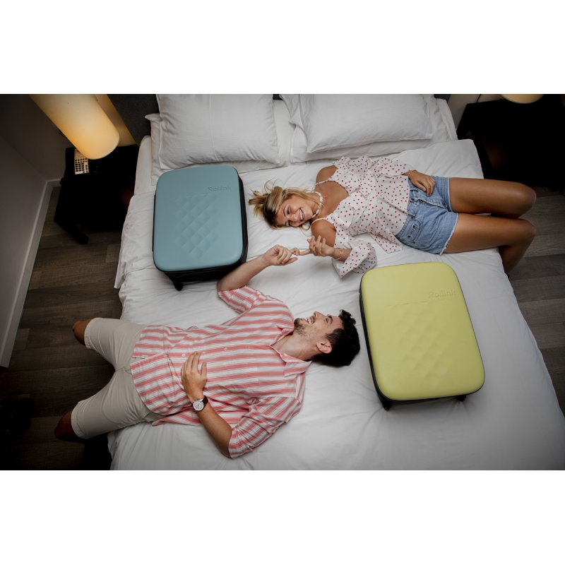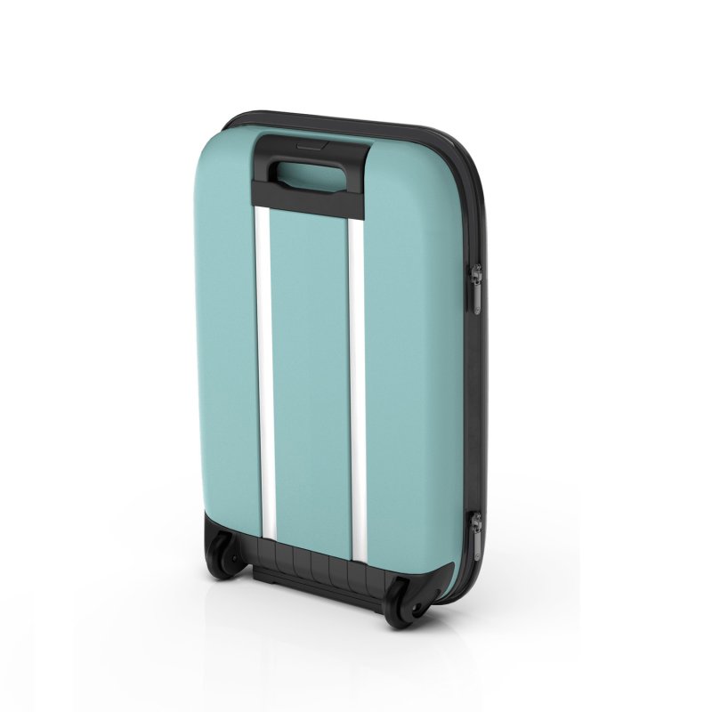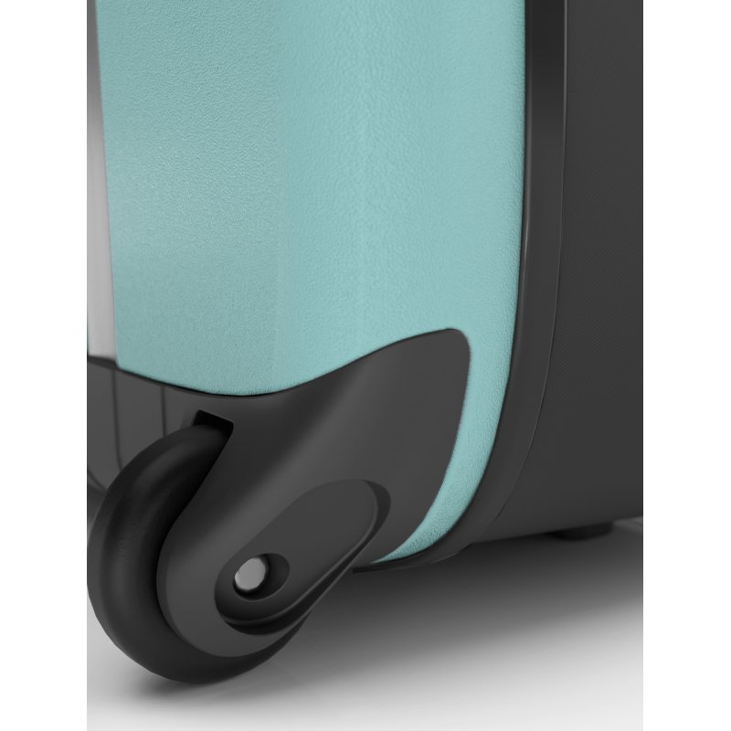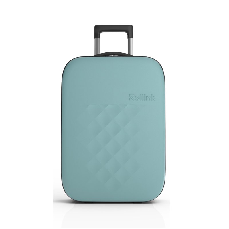 Складной легкий чемодан Rollink Vega II бирюзового цвета. Размер 55х40х20 см. В сложенном виде толщина составляет 5 см, с колёсами 8,5 см. Объем 40 л. Вес 2,4 кг. Жесткие стенки сделаны из поликарбоната повышенной ударопрочности. Бока мягкие, из темно-серого плотного полиэстера с высокой водоотталкивающей способностью. Чемодан уверенно стоит вертикально даже в сложенном состоянии. Внутри три откидывающихся жестких клапана на дне и боках чемодана, крепятся липучками и сохраняют форму чемодана в собранном виде. Эластичная Х-образная стяжка для фиксации предметов внутри чемодана. Боковой easy access карман 12х18,5 см на липучке для документов и телефона. Удлиненная надежная выдвижная телескопическая ручка из алюминия с несколькими уровнями фиксации высоты ручки (от пола 88/96/104 см) для людей разного роста и удобная мягкая ручка сверху чемодана, чтобы было удобно нести его в руках. 2 колеса со специальным покрытием и подшипниками для более плавного и бесшумного передвижения. Высококачественная молния черного цвета. В комплект входит эластичная стяжка для фиксации чемодана в сложенном состоянии.