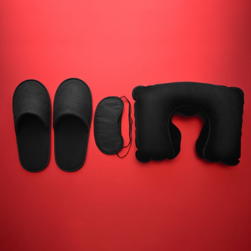 - Материал:чехол, маска - полиэстер; подушка - ПВХ, флокированный; тапки - полиэстер, подошва - ЭВА