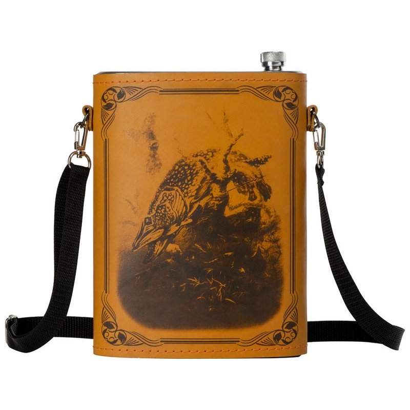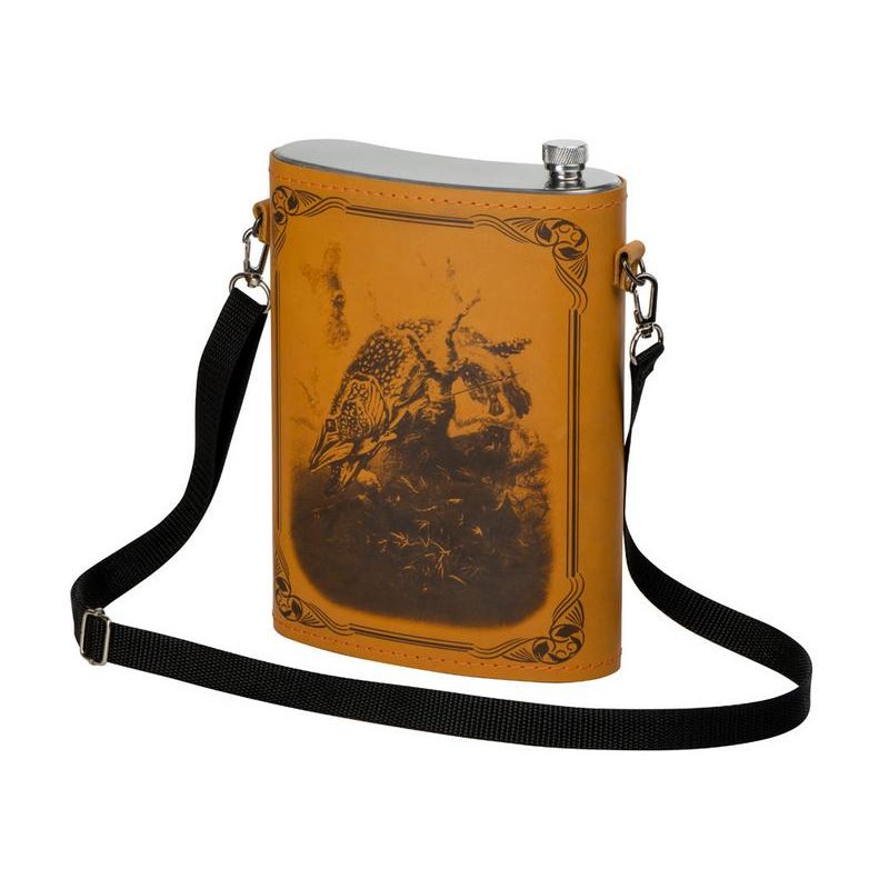 Фляга 2л в оплетке из натуральной кожи с нанесением рисунка методом художественного выжигания.