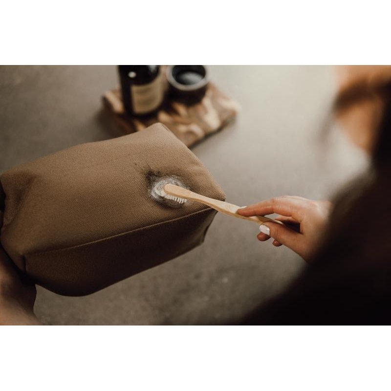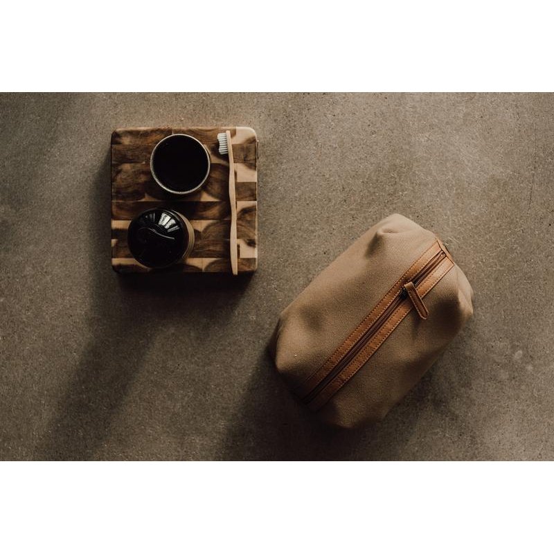 Элементами декора на косметичке служат вставки из полиуретана, при производстве которого не использовались растворители, только вода. Заклепки позволяют расширить или уменьшить косметичку, а благодаря достаточно большому размеру в нее поместится вся необходимая вам косметика — или лекарства, которые нужно носить с собой. Снаружи имеется небольшой кармашек на молнии. Благодаря минималистичному дизайну, косметичка будет хорошо смотреться с любой сумкой, и вы не захотите с ней расставаться.