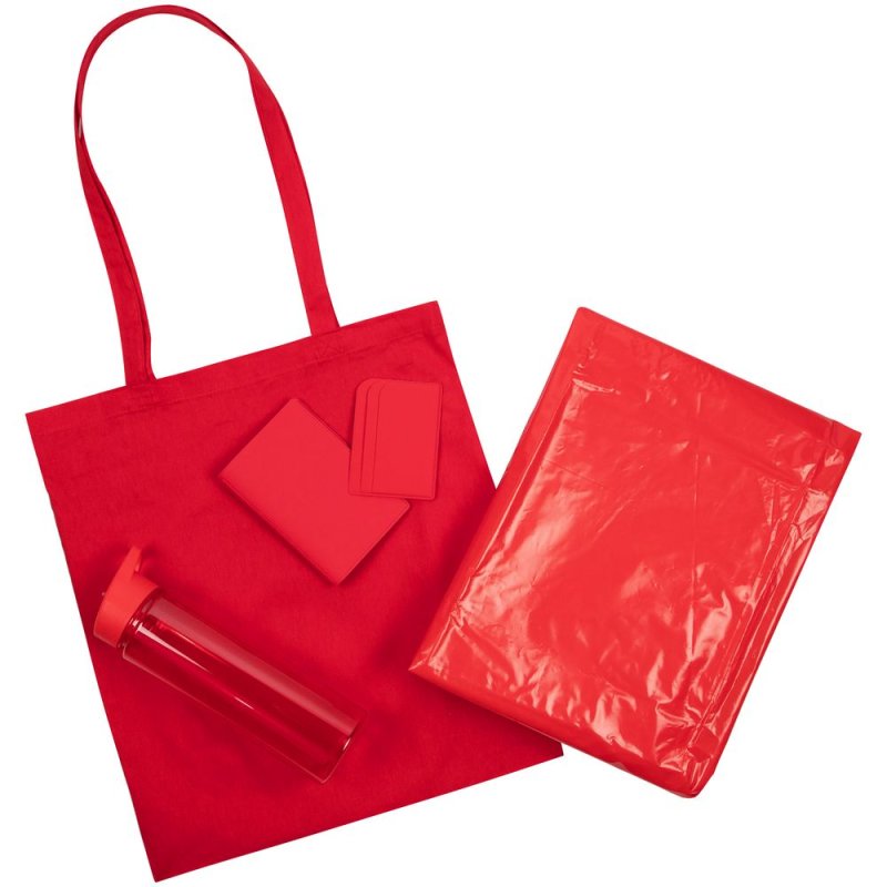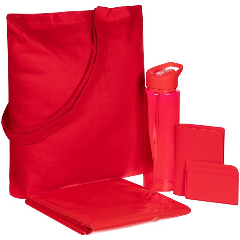 - Материал:обложка для паспорта, чехол для карточек - искусственная кожа; бутылка - пластик; сумка - хлопок 100%, плотность 105 г/м²; дождевик - полиэтилен