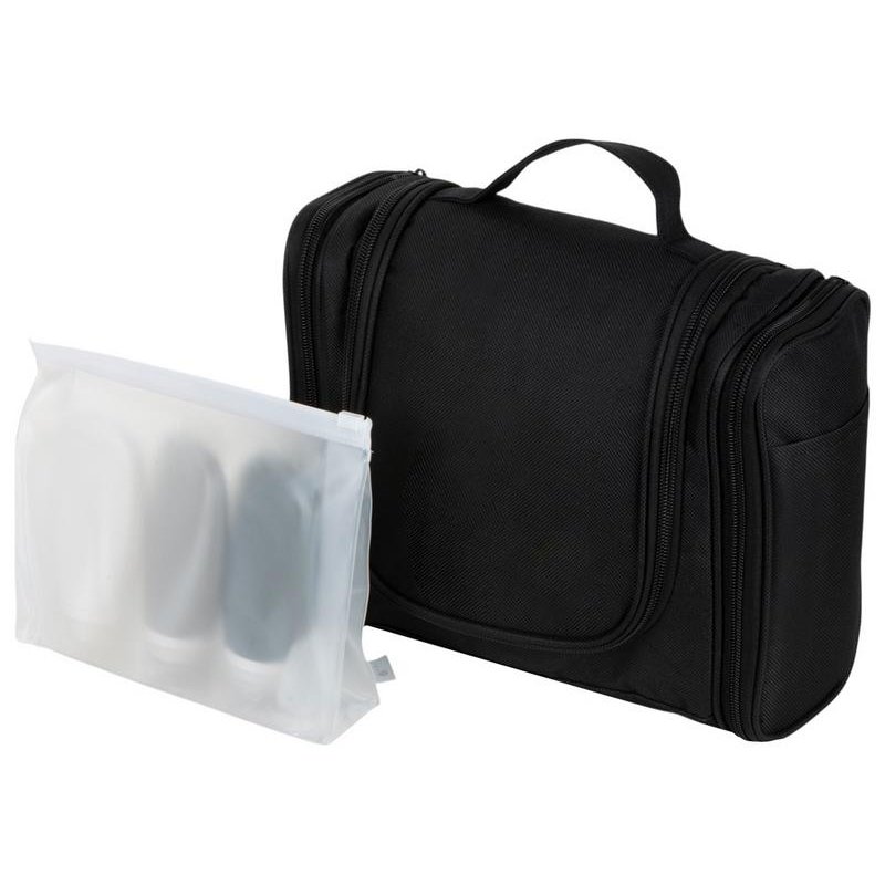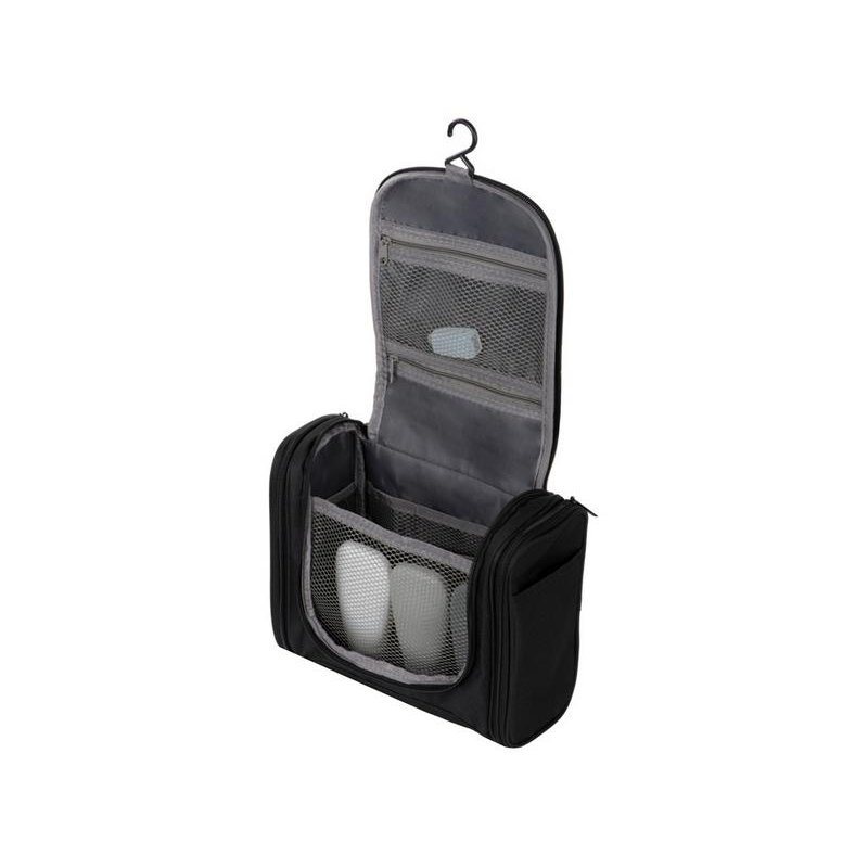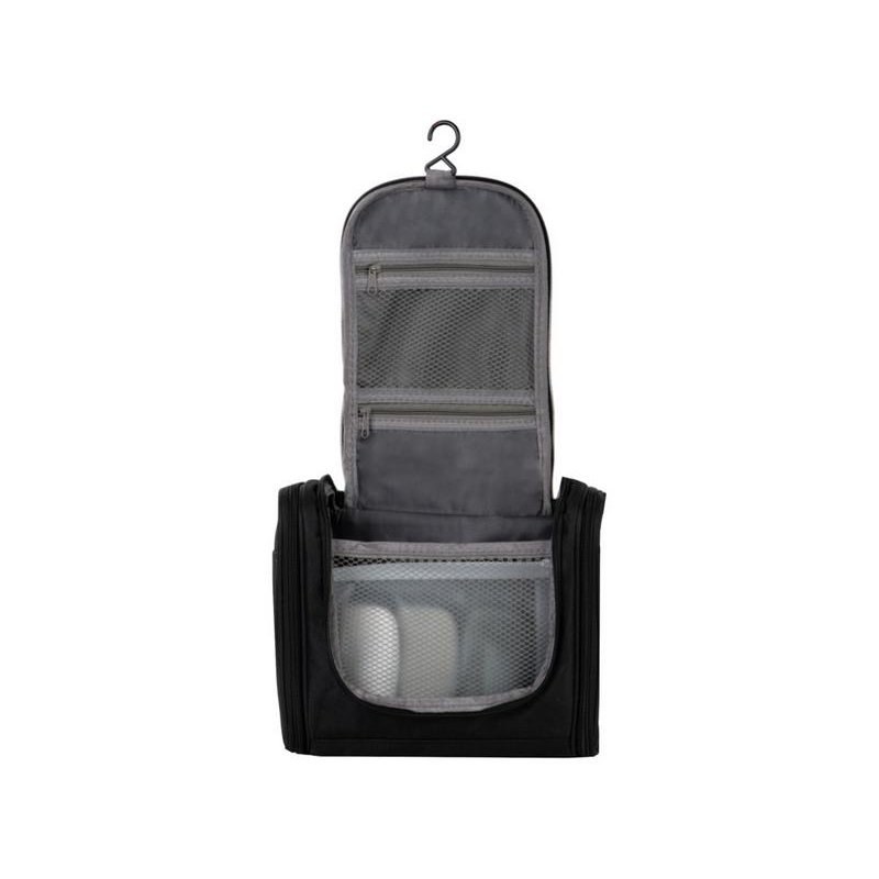 Несессер для путешествий. Эргономичный и вместительный, имеет внутренние и внешние карманы и большое отделение внутри. Оснащён ручкой для переноски и крючком для подвешивания. Нейтральный лаконичный дизайн позволяет преподнести несессер как мужчине, так и женщине;