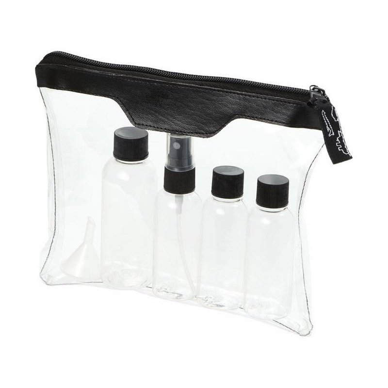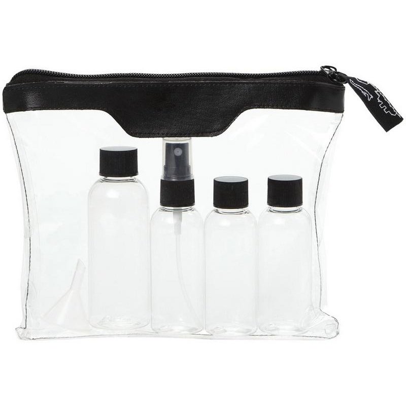 Одобренный дорожный набор бутылок для полетов Munich. Включает 2 бутылки по 50 мл, 1 бутылку на 90 мл и 1 пульверизатор. ПВХ.