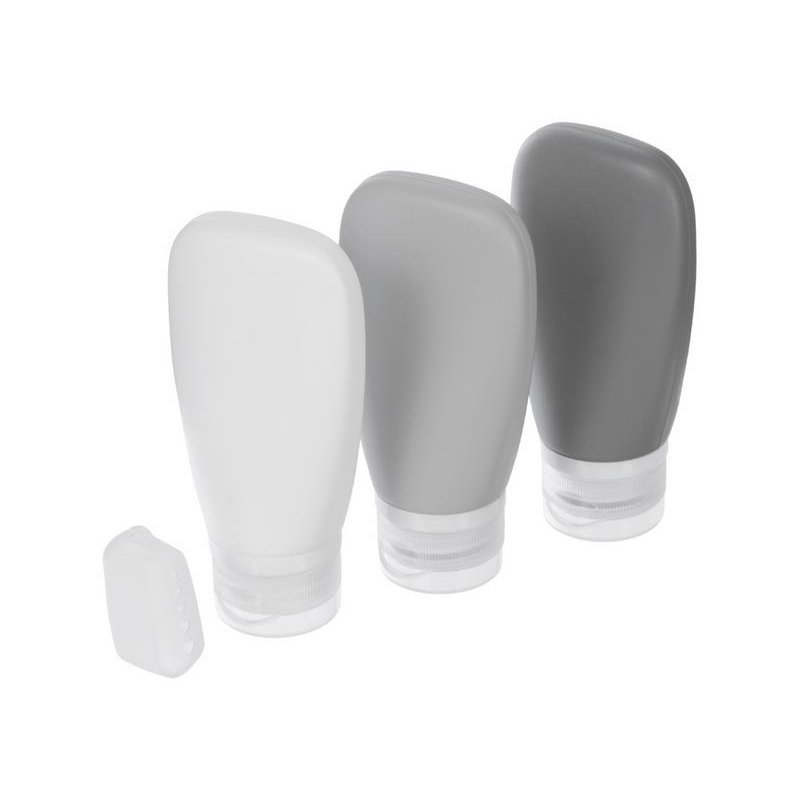 В наборе как раз три силиконовых ёмкости по 90 мл, все они разного цвета, что поможет с легкостью идентифицировать каждый продукт. Также в On air входит колпачок для зубной щётки.