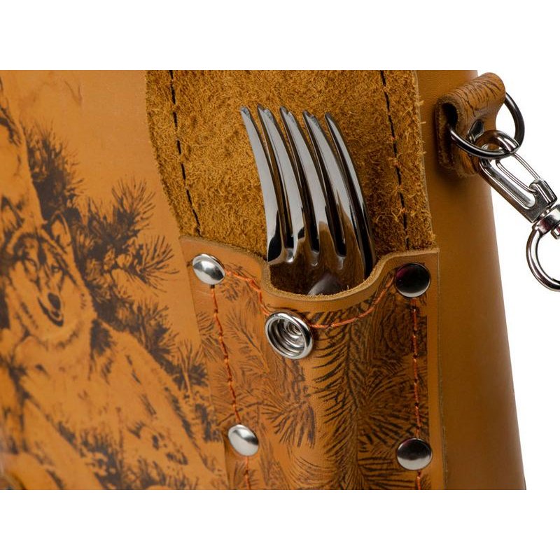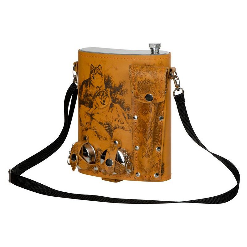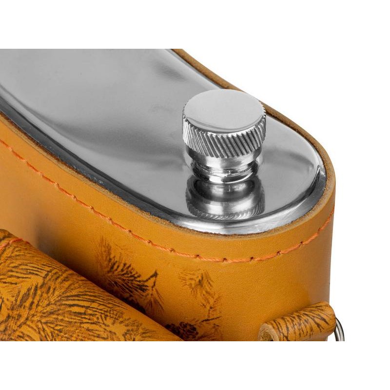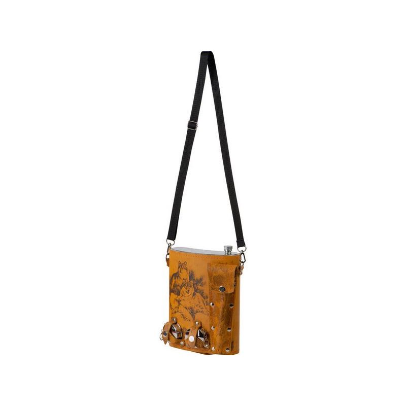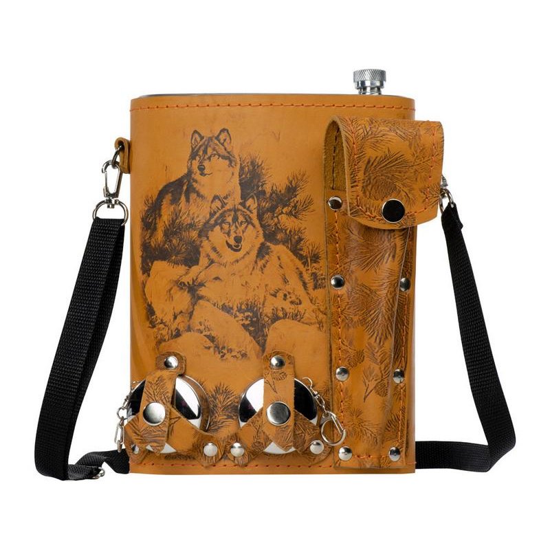 Фляга 2л в оплетке из натуральной кожи с нанесением рисунка методом художественного выжигания.