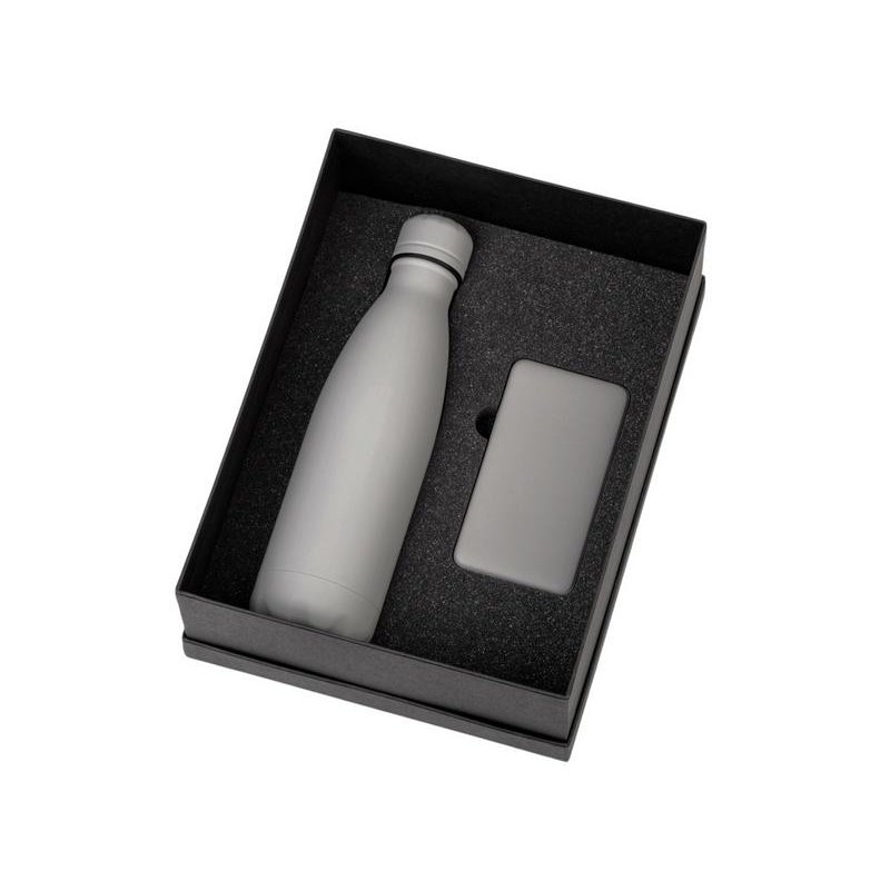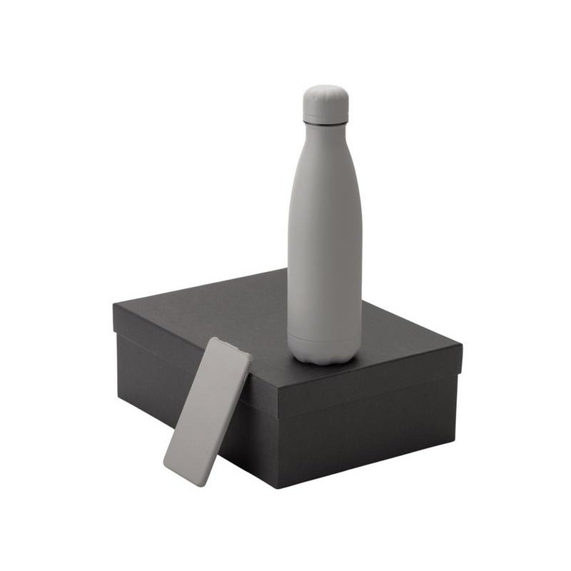 - Материал товара:повербанк- пластик с покрытием soft-touch, термобутылка- нержавеющая cталь с покрытием soft-touch