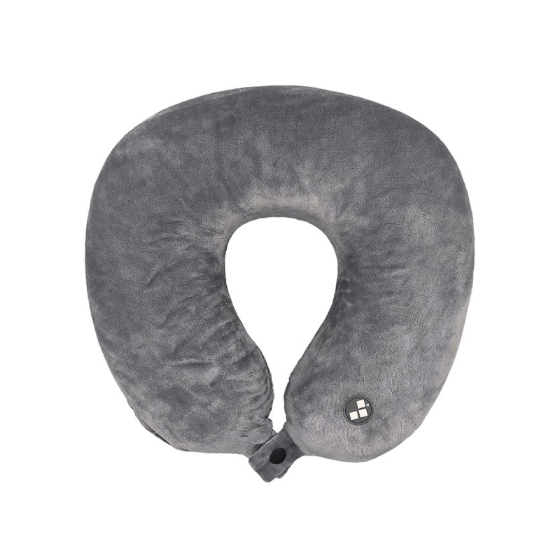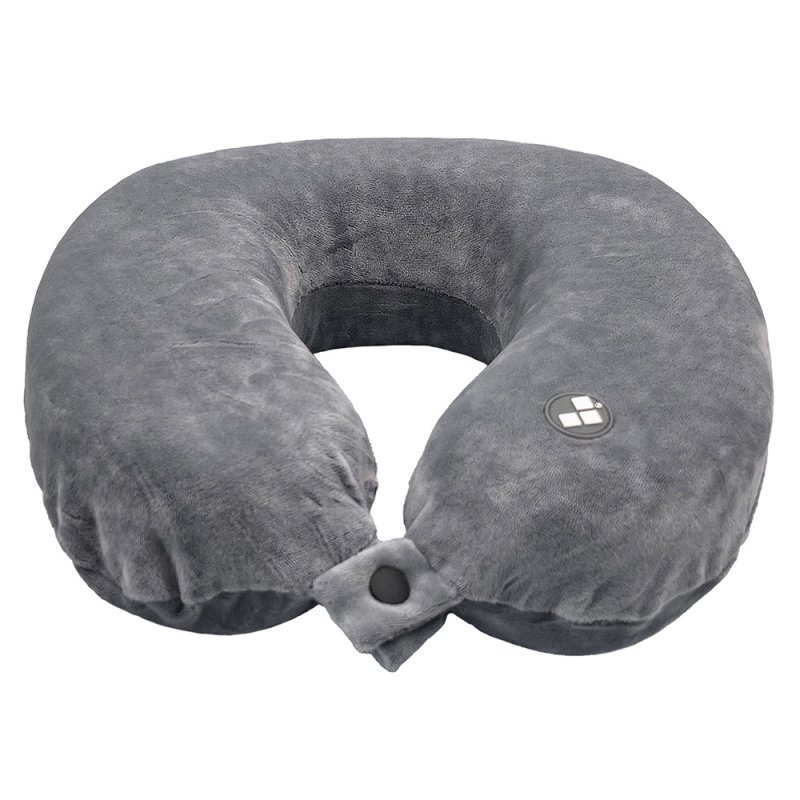 Удобная кнопочная застёжка надёжно фиксирует подушку на шее, а в комплект входит прочный круглый чехол на молнии — для компактного хранения и перевозки.