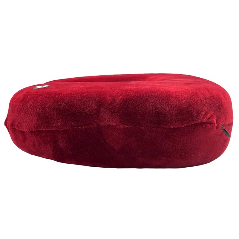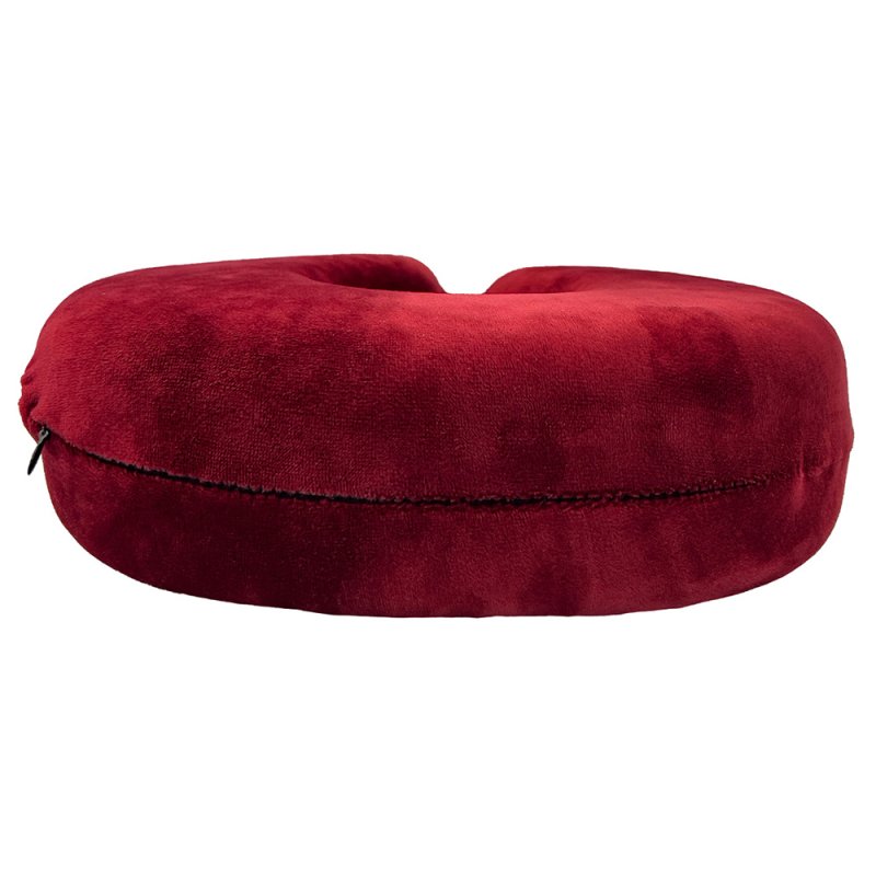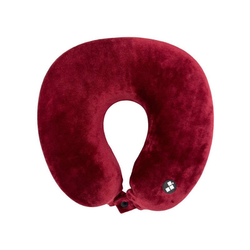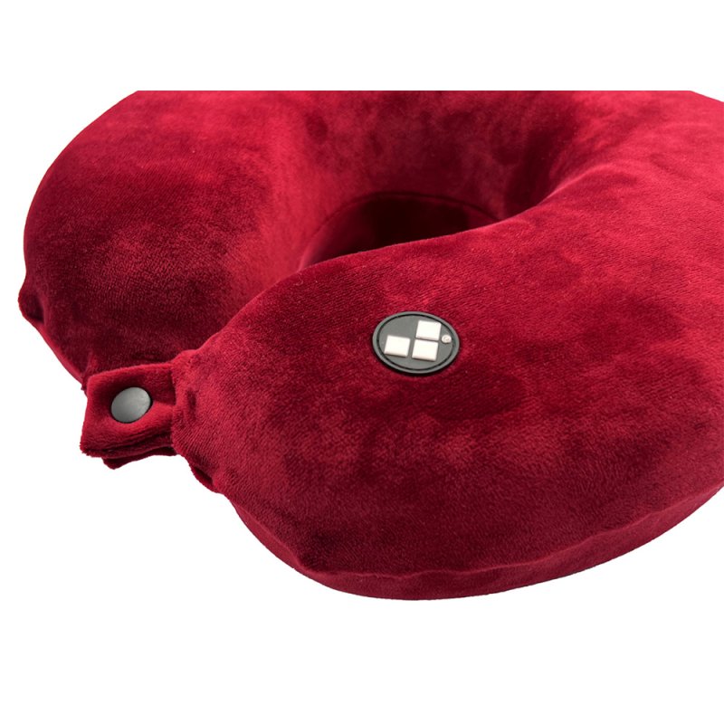 Удобная кнопочная застёжка надёжно фиксирует подушку на шее, а в комплект входит прочный круглый чехол на молнии — для компактного хранения и перевозки.