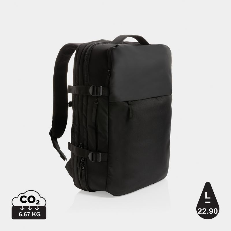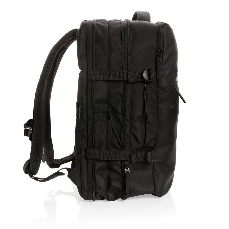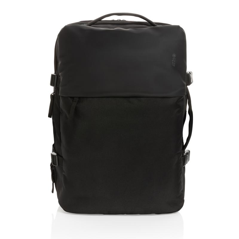 Рюкзак для путешествий Swiss Peak из rPET AWARE™ с регулируемым объемом идеально подойдет для рабочих поездок. Оснащен отделением для ноутбука до 15.6" с быстрым доступом для прохождения досмотра в аэропорту. При необходимости вместимость рюкзака можно увеличить на 35%. Боковые ремни служат дополнительным укреплением. Специальные карманы-органайзеры предусмотрены для зарядного устройства, кабелей и других необходимых в поездке мелочей. Есть багажный ремень. Рюкзак выполнен из материала rPET с маркировкой AWARE™, подтверждающей подлинность переработанных материалов. При производстве этого рюкзака мы сэкономили 22,9 л воды и переработали 38,4 пластиковых бутылок объемом 0,5 л. 2% с продаж каждого изделия будут переданы в фонд Water.org. Не содержит ПВХ.