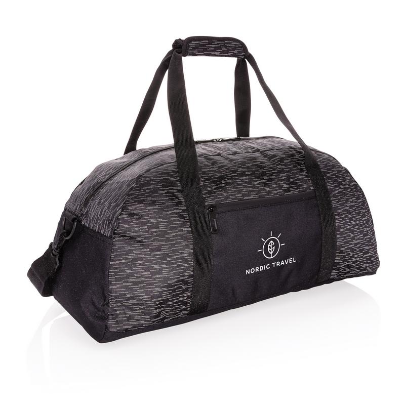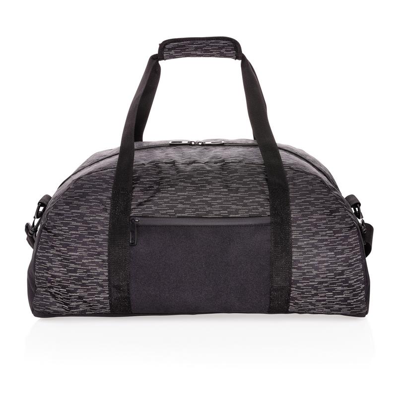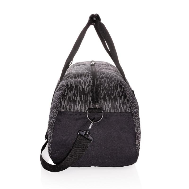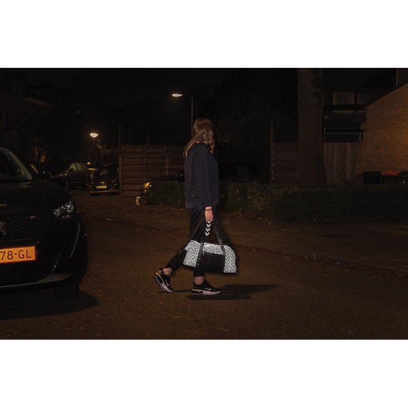 Спортивная сумка сделана из 100% переработанного полиэстера с добавлением индикатора AWARE™. Наличие индикатора гарантирует использование подлинных переработанных материалов, а также экономию воды в процессе производства. Светоотражающий принт на всех сторонах сумки, есть дополнительный внешний карман на молнии. Внутри — 2 сетчатых кармана. Не содержит ПВХ. При производстве этой модели было сэкономлено 10 литров воды и переработано 19 пластиковых бутылок.