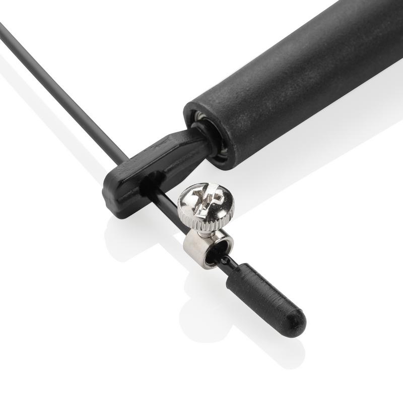 С этой скакалкой вы всегда будете в отличной физической форме. С ее помощью легко тренировать координацию, выносливость и сжигать калории. Регулируйте длину скакалки под свой рост. Изделие изготовлено из сверхлегкого пластика (PP) для оптимальной скорости и маневренности. Поставляется в черном чехле с большим полем для нанесения.
