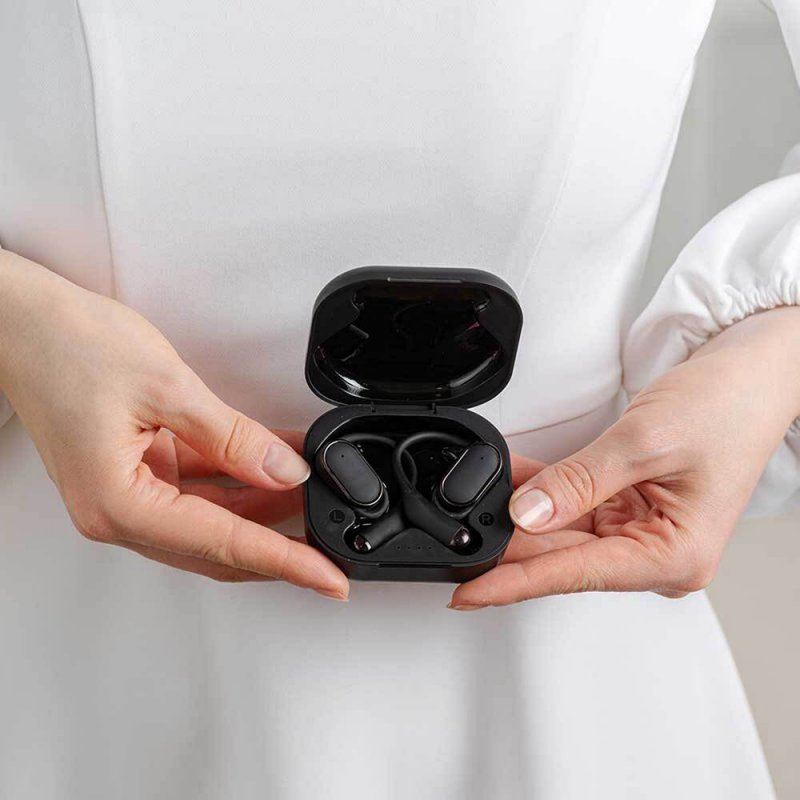 Беспроводные наушники средней ценовой категории с направленными динамиками. Благодаря направленным динамикам уши открыты и слышны все окружающие звуки.