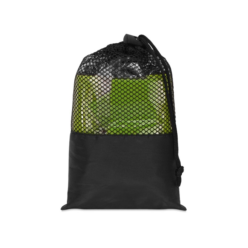 Набор упакован в тканевый мешочек на шнурке, а сквозь сетчатую вставку можно рассмотреть содержимое, чтобы точно взять все необходимое для тренировки с собой.