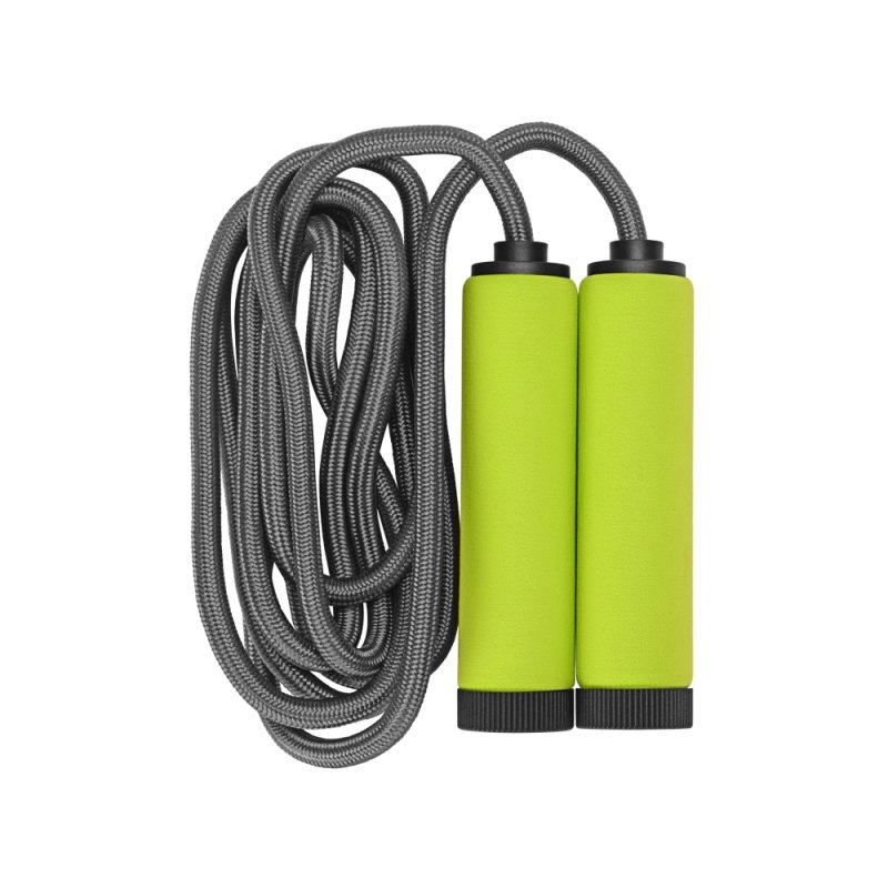 Скакалка — с удобными эргономичными пластиковыми ручками, зона хвата покрыта мягким вспененным материалом, который не дает ладони скользить во время тренировок.