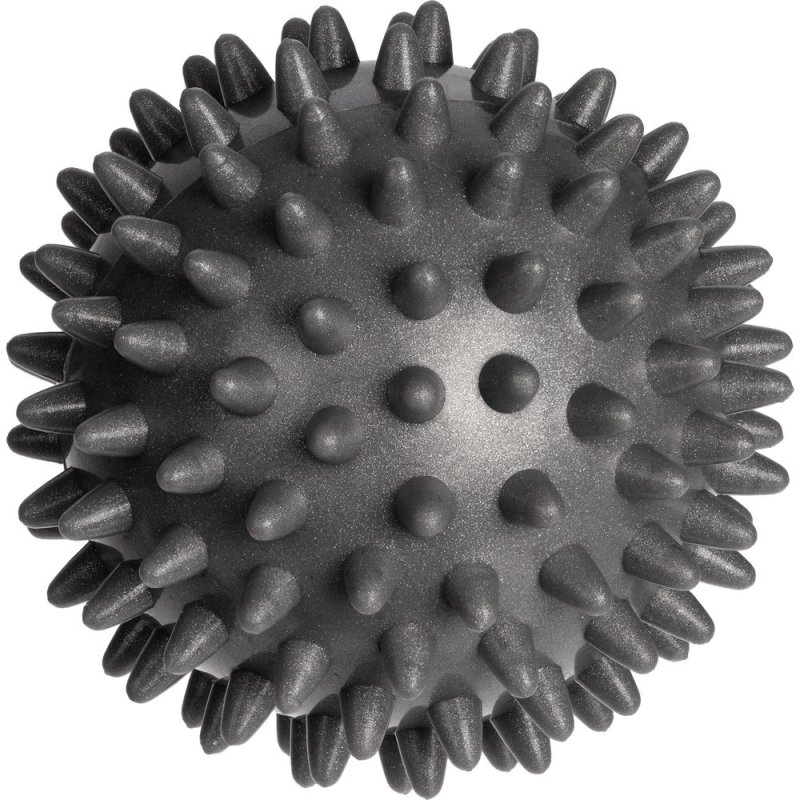 - Игольчатый серый мяч с мягкими шипами стимулирует нервные окончания, улучшает кровообращение, устраняет мышечные спазмы.