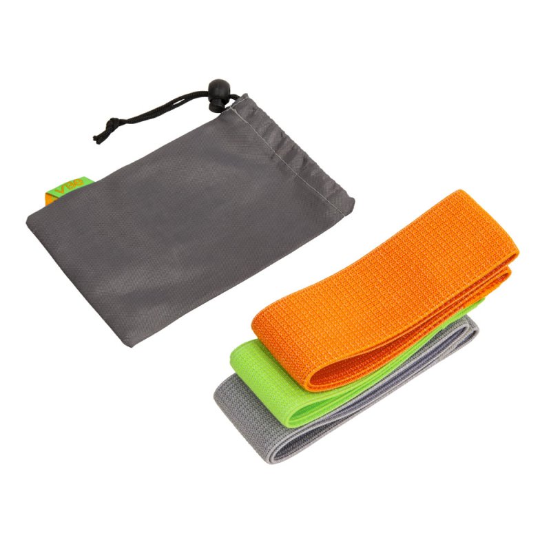 Сет ярких текстильных резинок от Vibe поставляется в мешочке из синтетической ткани, благодаря которому набор можно компактно хранить дома, а также брать с собой на тренировки и в поездки. Обратите внимание на то, как выполнена сшивка: благодаря такому решению резинка не натирает кожу в месте стыка при занятиях и прослужит дольше. С внутренней стороны каждая резинка прошита силиконовой вставкой против скольжения по время тренировки.