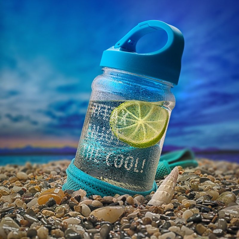 При хранении в бутылке полотенце сохранит охлаждающий эффект в течение нескольких часов. Благодаря крышке-карабину ее удобно прицепить на рюкзак или сумку.