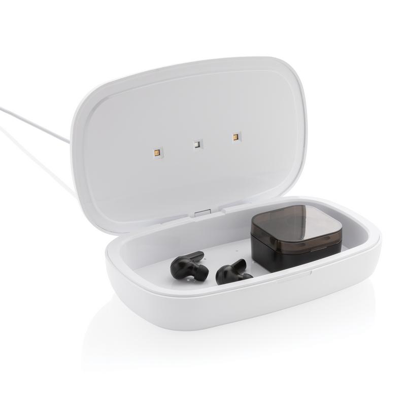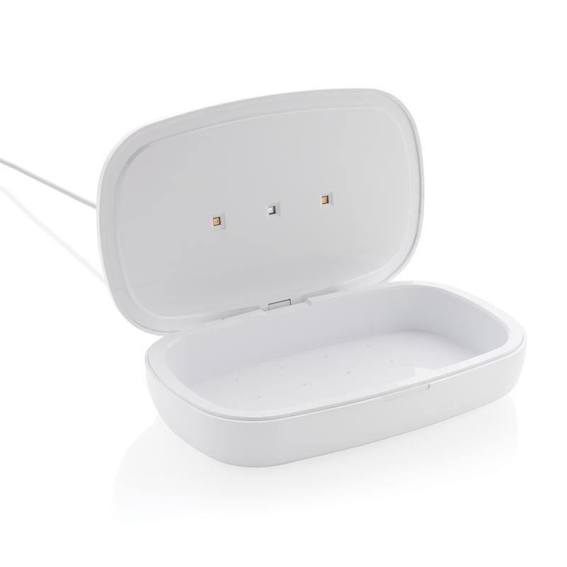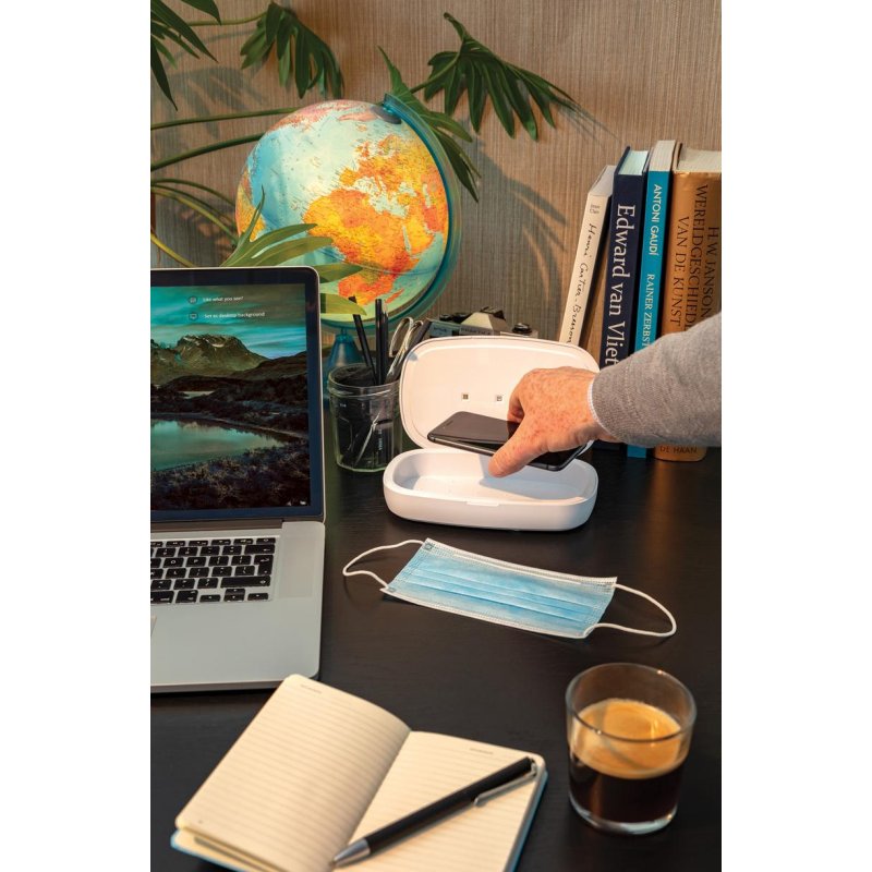 Многофункциональный стерилизатор UV-C, который уничтожает до 99,9% бактерий. Просто положите в устройство наушники, украшения, часы или защитную маску, чтобы стерилизовать их при помощи технологии UV-C. Вы можете провести быструю очистку за 90 секунд или полную стерилизацию за 5 минут. Лампы внутри устройства нетоксичны и не содержат ртути в отличие от большинства ультрафиолетовых ламп на рынке. Стерилизатор оснащен функцией автоматического отключения при открывании крышки, чтобы защитить вас от воздействия ультрафиолетового излучения. Лампы рассчитаны на работу до 10 000 часов. На крышке стерилизатора расположено устройство для беспроводной зарядки смартфонов, мощность 5 Вт. В комплекте есть метровый кабель Type-C (TPE без ПВХ). Вход: 5 В / 2 А; Выход: 5/1 А, 5 Вт.